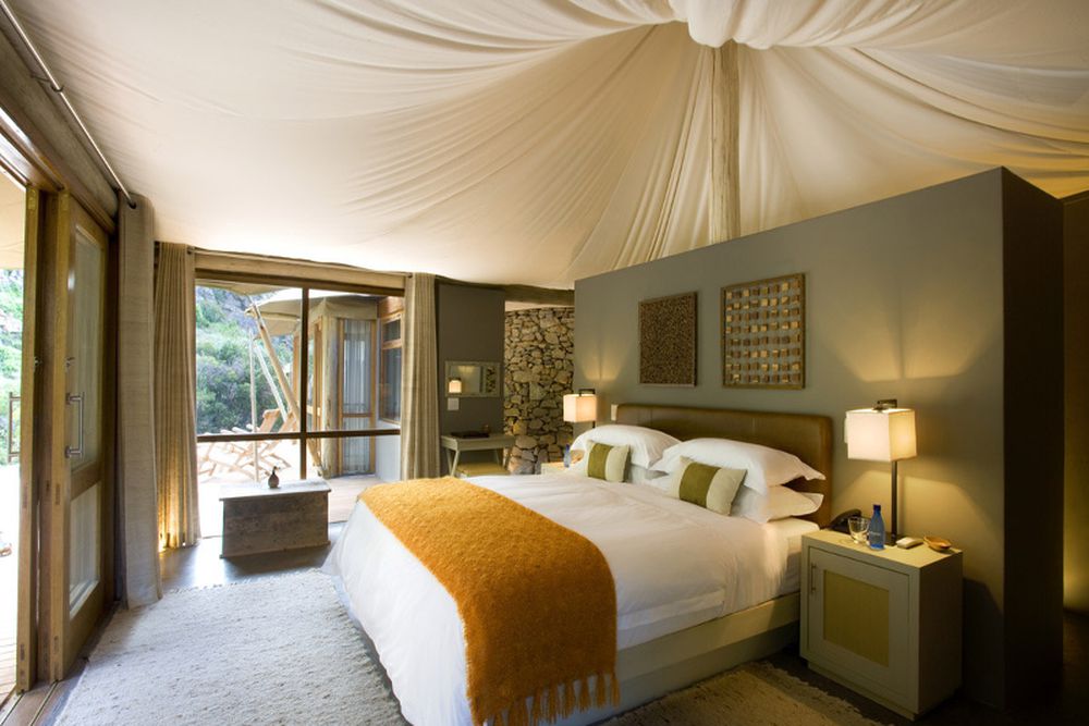 Il existe 54 lodges exclusifs dans la réserve exempte de paludisme sur 54 000 acres. Le lodge dispose également d'un bar confortable et d'un salon avec cheminée, télévision et coin repas. Sur demande, vous pourrez également prendre soin de vous dans le petit espace spa. Les tentes ont leur propre petite piscine, salle de bains avec douche extérieure et intérieure, minibar, cafetière et théière, coffre-fort et climatisation.