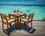 Directement au-dessus de la mer se trouve la Deluxe Water Villa avec une confortable terrasse ensoleillée. Ici, vous pouvez regarder le magnifique coucher de soleil.