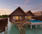 Ocean Villa with Pool - environ 290 m², située sur pilotis directement au-dessus de la lagune - idéale pour les couples en lune de miel. Les points forts sont le salon avec sol en verre, la piscine à débordement de 30 m² et le solarium meublé avec un coin repas d'où l'on peut profiter d'une vue fantastique sur la mer bleue sans fin - du pur romantisme ! Pour un maximum de 2 adultes et 2 enfants ou 3 adultes.