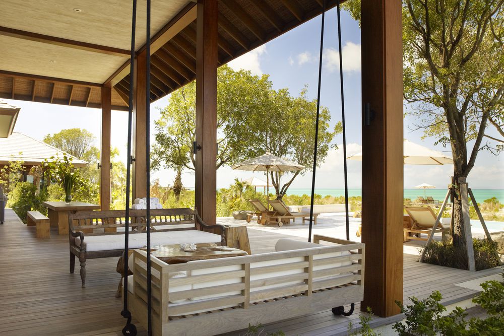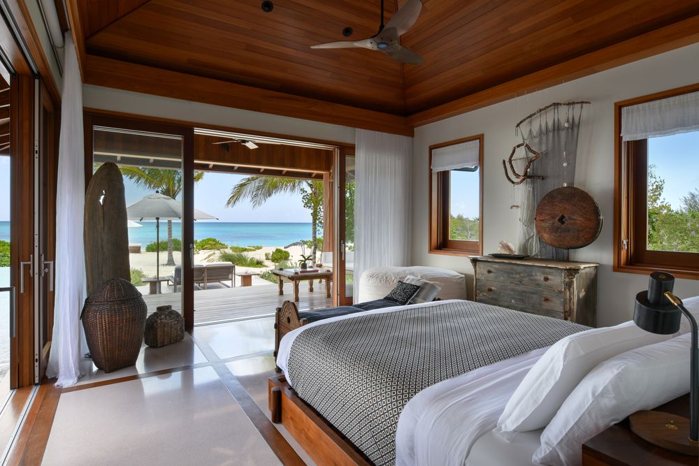 Le design simple se reflète également dans l'intérieur, où les rideaux de coton doux des lits à baldaquin flottent doucement dans l'air. Dans la partie intacte de l'île, derrière les villas Rocky Point, il y a d'autres grandes maisons de plage avec leurs propres piscines bleu cobalt. Le COMO Parrot Cay offre à ses invités des cours de yoga et des thérapies d'inspiration asiatique pour attirer l'énergie et la force.