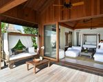 One Bedroom Beach Villas, villa individuelle avec un salon spacieux comprenant une salle à manger, une chambre à coucher avec jardin d'hiver et salle de bain séparée (y compris douche extérieure dans le jardin), salle de bain séparée, cuisine et terrasse avec jacuzzi chauffé.