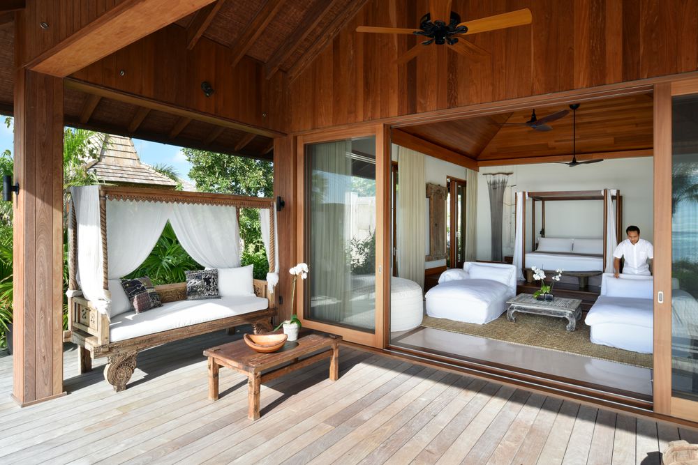 Les chambres, les suites et les villas, meublées avec élégance et inondées de lumière, sont meublées avec des meubles balinais clairs.