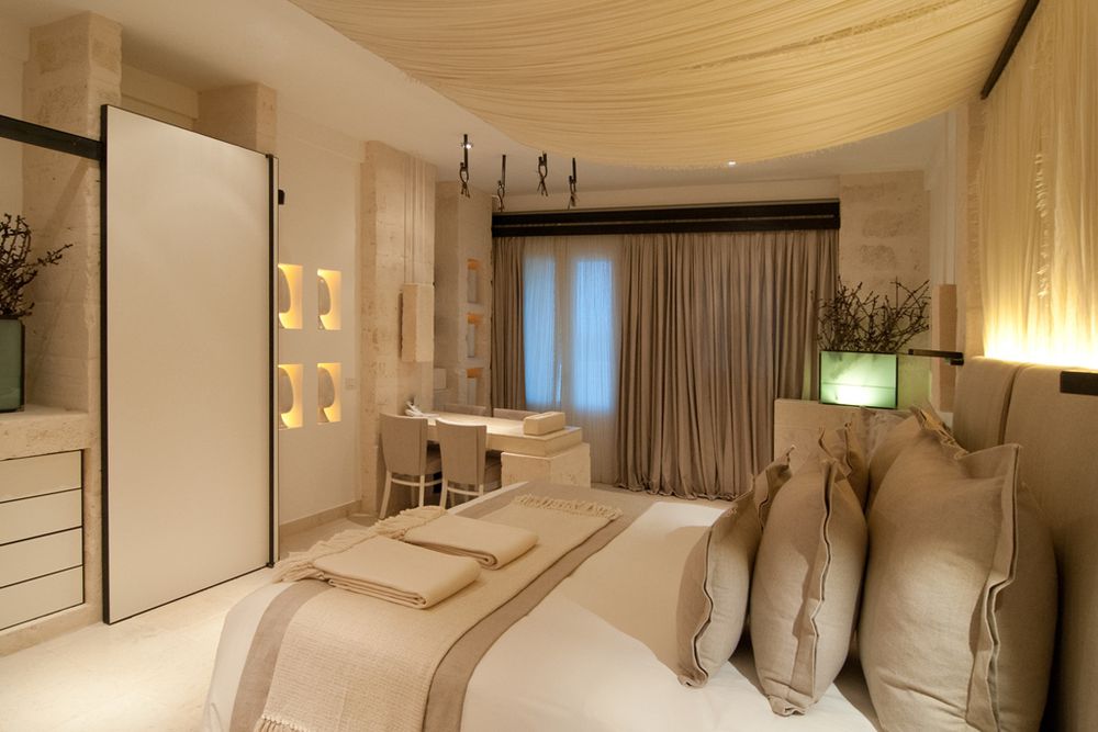 Ce complexe de luxe est modelé sur un village des Pouilles et combine ainsi le flair traditionnel des Pouilles avec le luxe le plus moderne. Les couleurs douces du grès local à partir duquel les maisons sont construites se reflètent également dans l'aménagement intérieur. Des matériaux précieux et des détails méditerranéens raffinés créent une ambiance élégante et une transition parfaite entre le flair italien authentique et les standards modernes.