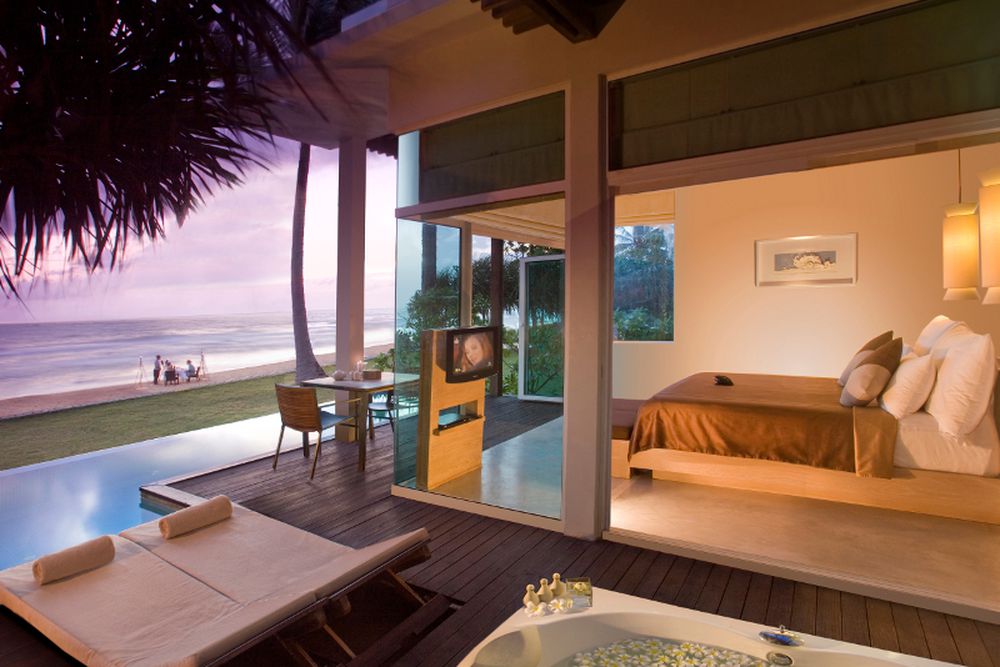 Pool Suite - d'environ 63 à 71 m², située directement sur la plage avec de grands murs extérieurs coulissants en verre pour une vue fantastique sur la mer. Ces quatre suites disposent d'une salle de bain avec douche séparée, WC, sèche-cheveux, peignoir et pantoufles, tapis de yoga, matelas exclusifs "Cloud 9", climatisation, minibar, cafetière, téléphone, iPod et iDock avec grand choix musical, TV plasma, Wifi gratuit, coffre-fort, et en plus une piscine privée avec terrasse et Jacuzzi.
