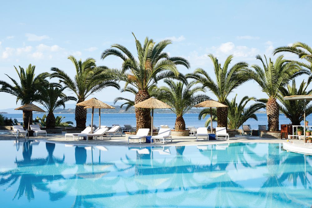 Bienvenue dans le luxueux et familial Eagle Palace. Dirigé par une famille depuis 1925, cet hôtel en bord de mer vous accueille avec 157 chambres, suites et bungalows confortables à Ouranoupolis, à l'extrême nord de la péninsule de Chalcidique. L'hôtel exceptionnel du Small Luxury Hotel Group accorde une grande importance à la durabilité et est donc l'une des principales stations écologiques en Europe.