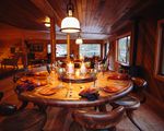 Dînez le soir dans la confortable cabane en bois dans une atmosphère rustique.
