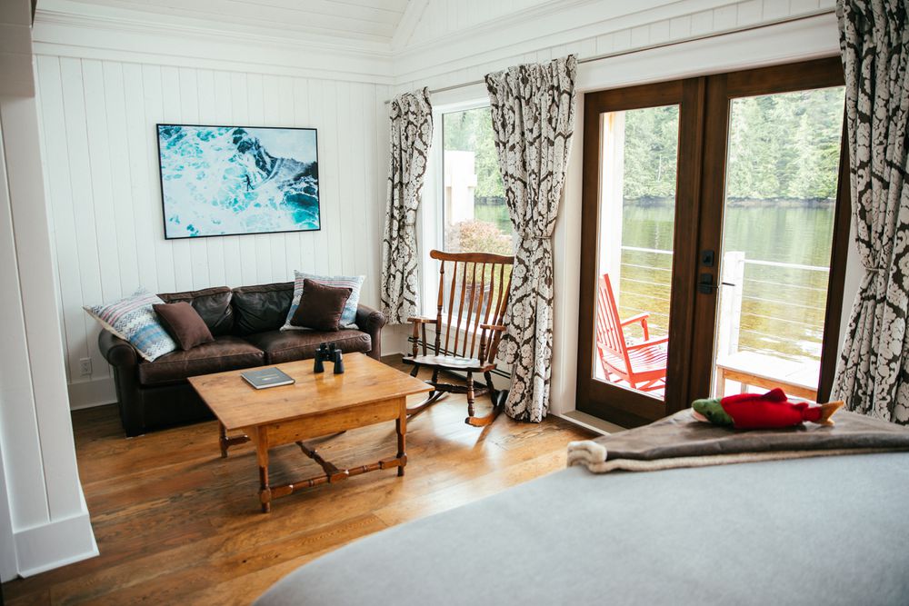 Passez vos nuits pendant votre aventure canadienne dans l'une des neuf confortables cabanes en bois situées directement sur le front de mer. Ici, la tradition de British Columbia et l'architecture caractéristique des maisons en bois se rencontrent dans un design intérieur élégant et moderne. Les maisons ont été conçues pour s'intégrer parfaitement à la nature. Certaines maisons sont construites sur pilotis, ce qui vous permet d'observer les marées en dessous de votre cabane.
