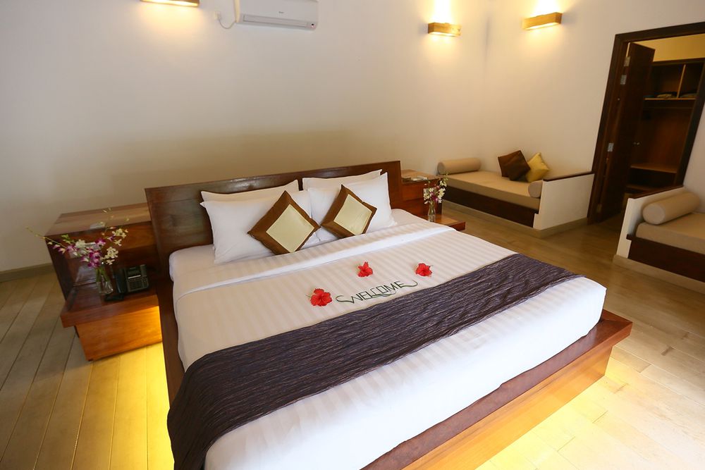 La Lagoon Prestige Beach Villa se caractérise par une chambre à coucher spacieuse avec un coin salon.