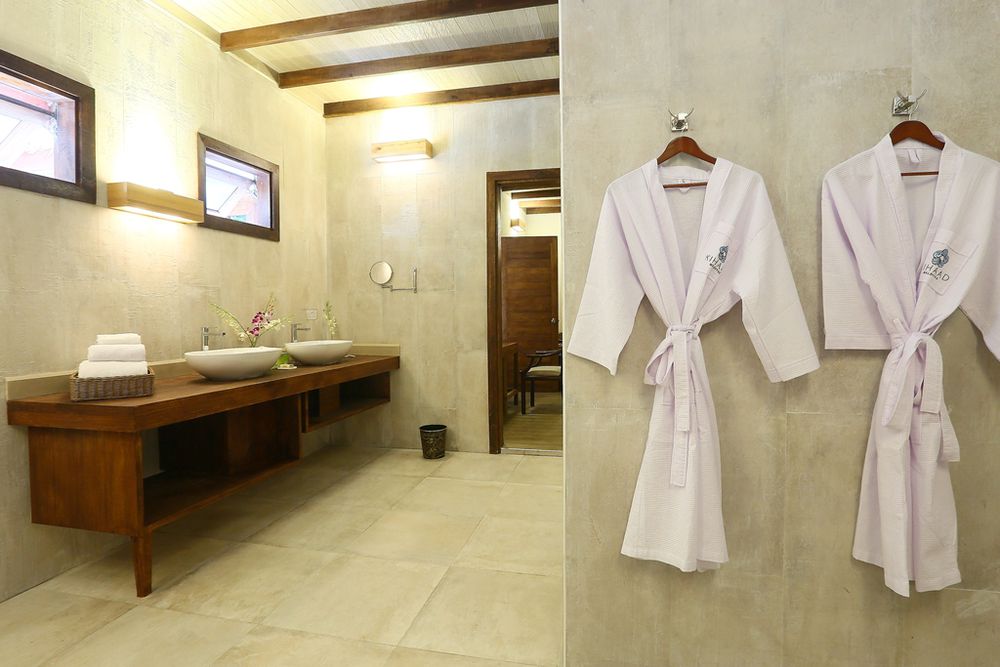 Reserve Beach Villa - d'une superficie d'environ 77 m², ces 48 villas sont très spacieuses et situées au calme au milieu d'une nature luxuriante. De votre terrasse en bois, vous pouvez profiter d'une vue imprenable sur l'océan Indien. Maximum 2 adultes + 2 enfants jusqu'à 17 ans ou 3 adultes + 1 enfant jusqu'à 17 ans.