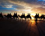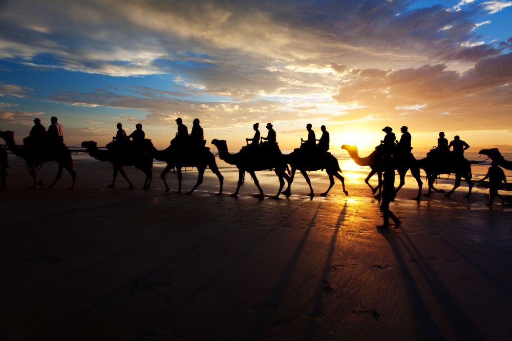 Une expérience inoubliable est une promenade à dos de chameau au coucher du soleil sur Cable Beach.