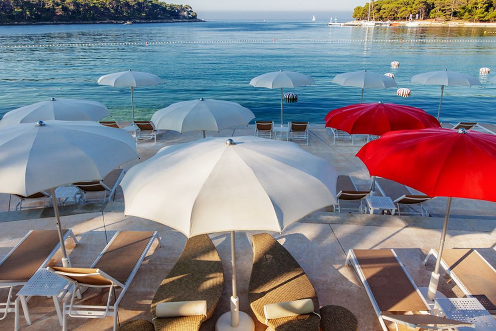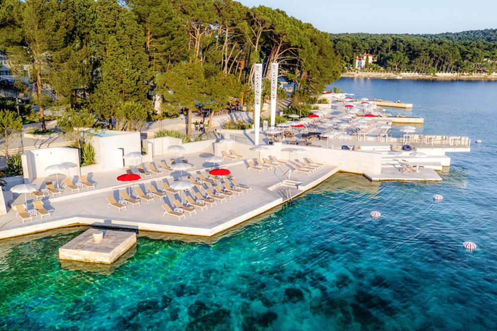La Croatie est connue pour ses plages rocheuses et ses eaux cristallines. Afin d'entrer agréablement dans l'eau, une zone de bronzage en pierre de couleur claire a été créée au-dessus de l'eau, ce qui facilite l'accès à l'eau fraîche grâce à des marches. Les serviettes de plage et de piscine sont disponibles gratuitement.