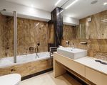 Presidential Suite - environ 185 m² de surface habitable + 119 m² de terrasse, la plus grande de toutes les catégories, est idéale pour les familles et les amis qui voyagent ensemble. Avec trois chambres doubles et trois entrées séparées, deux salons, quatre salles de bain, des toilettes pour invités, une mini-cuisine et deux placards, vous trouverez tout ce que vous désirez. Les salles de bains sont équipées de deux lavabos, d'un bidet et d'un sèche-cheveux. Les deux jacuzzis, les chaises longues et le canapé de la terrasse sont les points forts de la suite. Maximum 8 adultes.