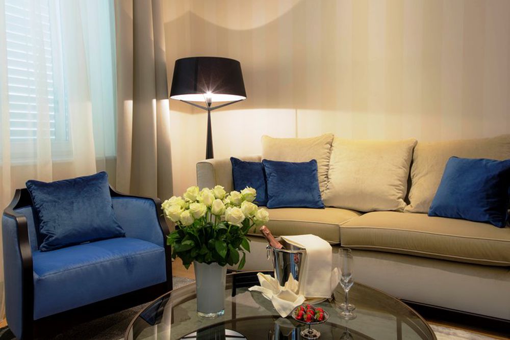 Avec 36 chambres de luxe et 15 suites de différentes catégories, il y en a pour tous les goûts. Les luminaires design adaptent l'éclairage à l'heure du jour et portent la signature du concepteur lumière Dean Skira. Toutes les chambres sont équipées de TV satellite interactive avec télévision payante, WiFi gratuit, coffre-fort, minibar, service à café et thé, station d'accueil iPod, peignoir et pantoufles, climatisation et oreillers antiallergiques.
