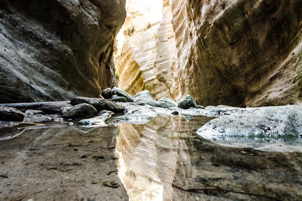 La gorge d'Avakas se caractérise par des températures agréables et un climat unique. L'eau est si claire que vous pouvez vous y voir reflété.