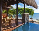 Oceanfront Pool Suite - env. 125 m², située au premier étage avec vue sur la mer et balcon en bois. Parmi les points forts de ces six suites, citons la piscine de 25 m², un mini hammam et une baignoire en pierre faite à la main. Maximum 2 adultes + 1 enfant jusqu'à 12 ans.