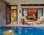 Beachfront Pool Suite - environ 180 m², à quelques pas de la mer, ces six suites sont situées directement sur la plage. Ils ont un jacuzzi, un mini hammam, une baignoire en pierre faite à la main avec vue sur la mer et une grande douche de pluie. La piscine à débordement de 52 m² en forme de L est directement accessible depuis la salle de bains spacieuse. Maximum 2 adultes + 1 enfant jusqu'à 12 ans.