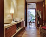 Les commodités comprennent une loge séparée avec coiffeuse, bureau, TV LCD, iPad, coffre-fort, minibar, fer et planche à repasser, air conditionné, ventilateurs au plafond et accessoires café et thé, y compris une machine Nespresso. La salle de bain est équipée d'une baignoire et d'une douche à l'italienne, d'un sèche-cheveux, de peignoirs, de pantoufles et de tongs. Il y a aussi une connexion internet gratuite.