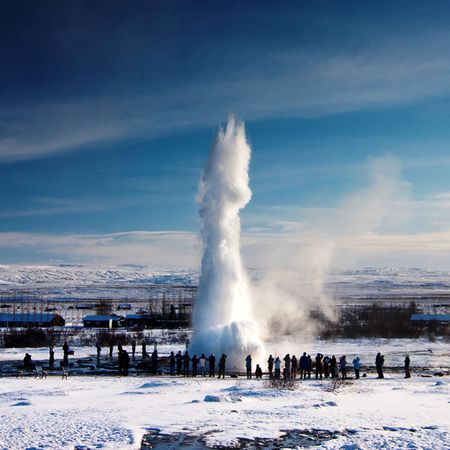 Après le déjeuner, dirigez-vous vers le parc national historiquement important de Þingvellir, la cascade spectaculaire de Gullfoss et la plus célèbre région géothermique d'Islande, Haukadalur. Découvrez de près la fascination de la terre : des sources chaudes, des pots de boue et un geyser, qui projette des fontaines d’eau de plusieurs mètres de haut toutes les quelques minutes.