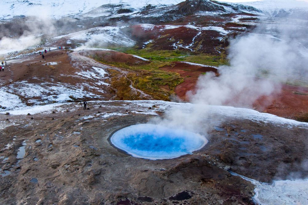 Même en hiver glacial, les sources chaudes et les geysers bouillonnent dans toute l'île.
