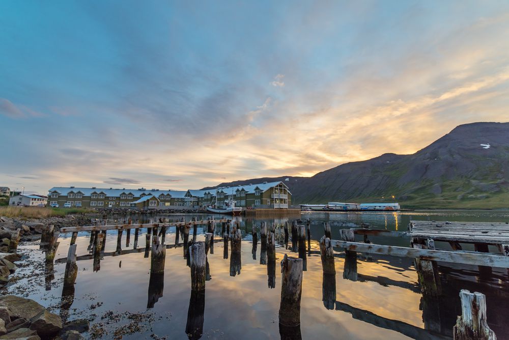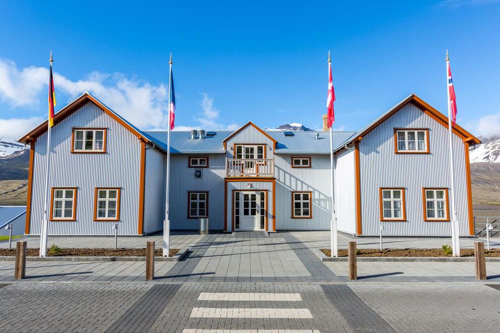 L'hôtel est divisé en quatre bâtiments, tous construits dès le 19ème siècle et utilisés à l'origine comme hébergement par les pêcheurs français. L'hôtel possède également un musée qui raconte l'histoire de ces pêcheurs. Le restaurant d'inspiration française, L'Arabi, sert des plats français avec une grande influence islandaise. Toutes les chambres offrent une vue unique sur le fjord et les montagnes.