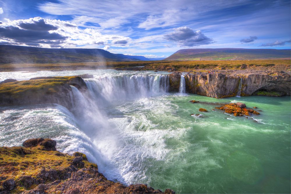 Le fjord Borgarfjörður, qui rentre environ cinq kilomètres dans le pays, est connu pour ses courants perfides et ses bas-fonds imprévus. Dans le même temps, la région éloignée se caractérise également par des paysages merveilleusement rudes avec d'innombrables cascades, qui font partie intégrante de certaines légendes et chansons. Au cours de votre visite, vous visiterez, entre autres, le Hraunfossar, qui traverse un champ de lave ouvert et joint la rivière Hvítá et les cascades de Barnafoss. Dans le village romantique de Reykholt, vous vous arrêterez pour un bref déjeuner avant de vous diriger vers l'une des plus puissantes sources géothermiques d'Europe, la source Deildartunguhver.