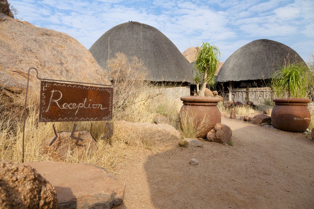 À la réception du Mowani Mountain Camp, les clients sont accueillis dans une atmosphère authentique.