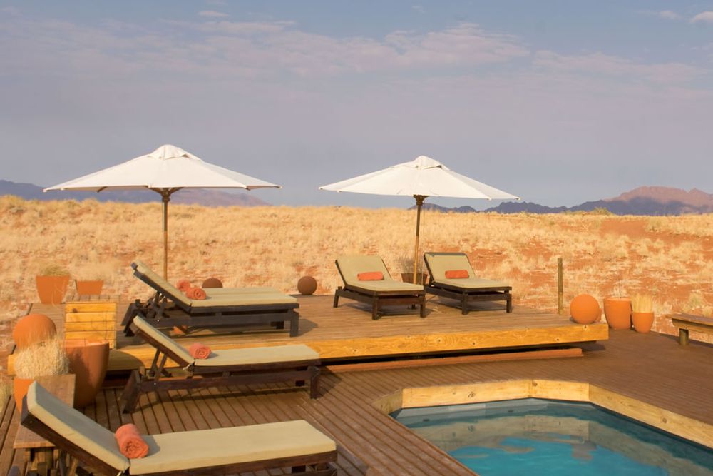 Le Wolwedans Dunes Lodge est situé dans la réserve naturelle de NamidRand, l'une des plus vastes d'Afrique australe, couvrant une superficie de 200 000 hectares, dédiée à la préservation et à la protection de cet écosystème. La particularité du Dunes Lodge est son emplacement unique sur un plateau de dunes, qui permet une vue extraordinaire sur le désert. Le Lodge comprend une zone principale avec plusieurs terrasses, deux salons, une bibliothèque, deux salles à manger et une piscine.