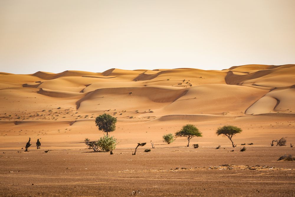 À quelques kilomètres seulement au sud, le paysage change radicalement. Le vert profond se transforme en un jaune doré brillant lorsque vous voyez les dunes de Wahiba Sands pour la première fois dans l'après-midi. Lors d'un voyage aventureux en véhicule 4x4, vous apprécierez les étendues apparemment infinies et les vagues apaisantes des dunes de sable, qui atteignent jusqu'à 150 mètres de haut.